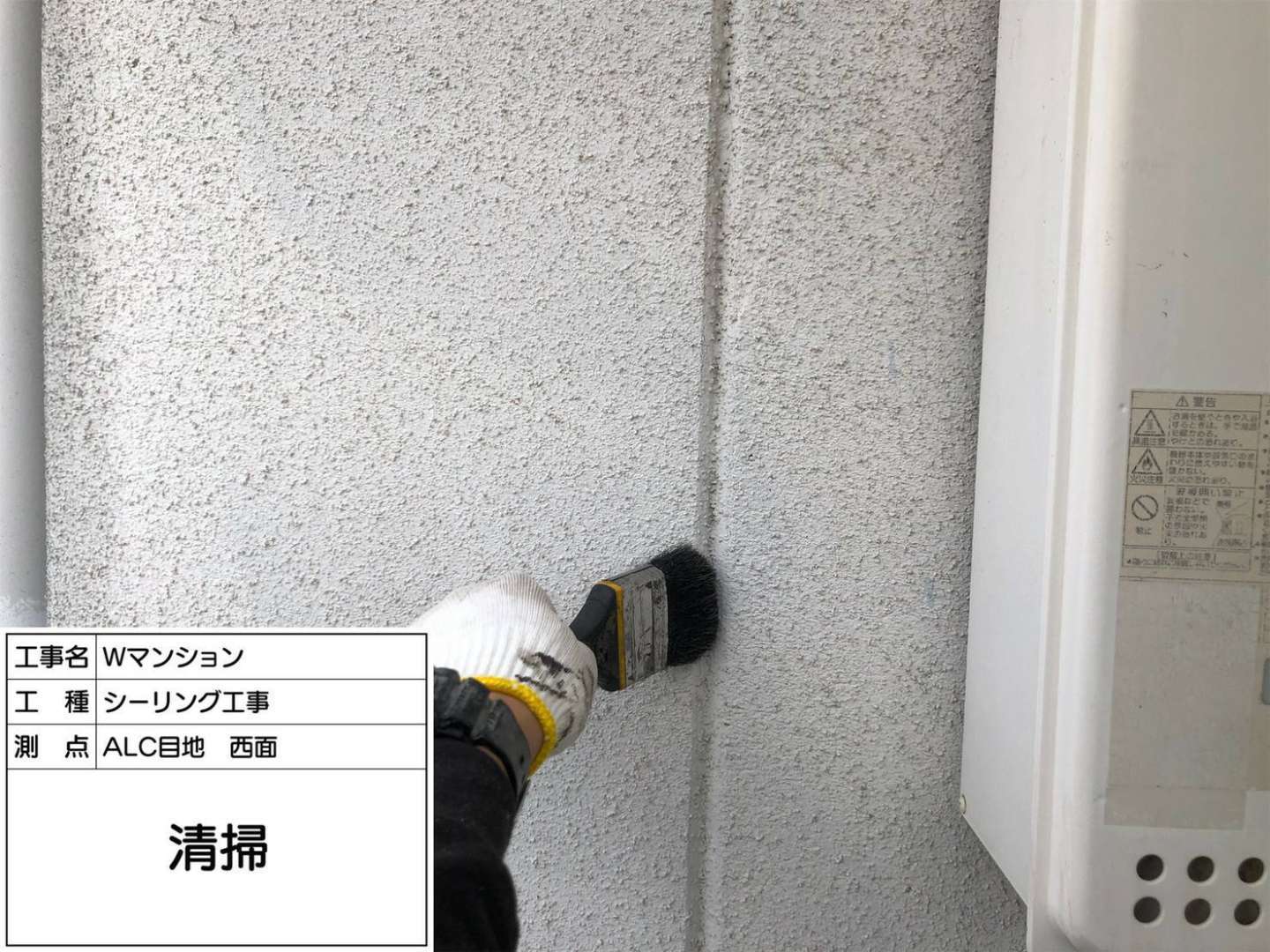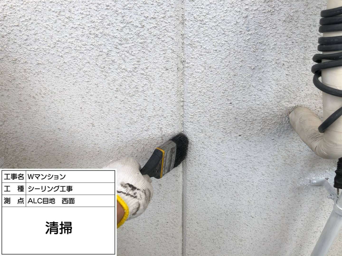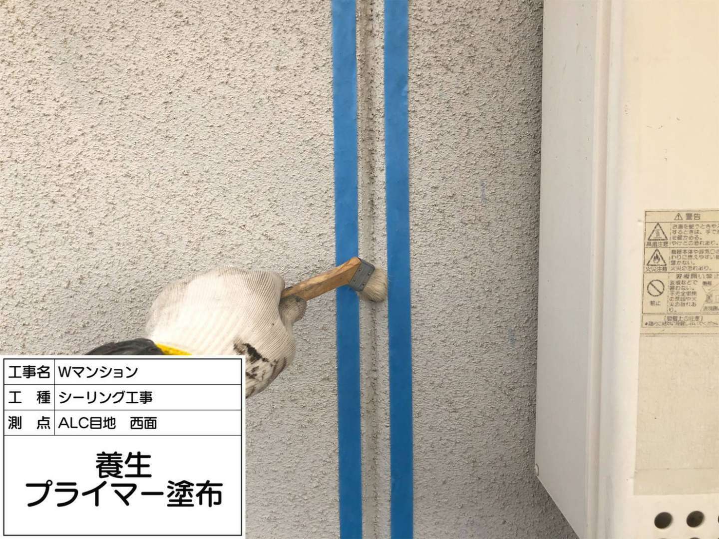 西面外壁のシーリング充填など一連の作業風景です。