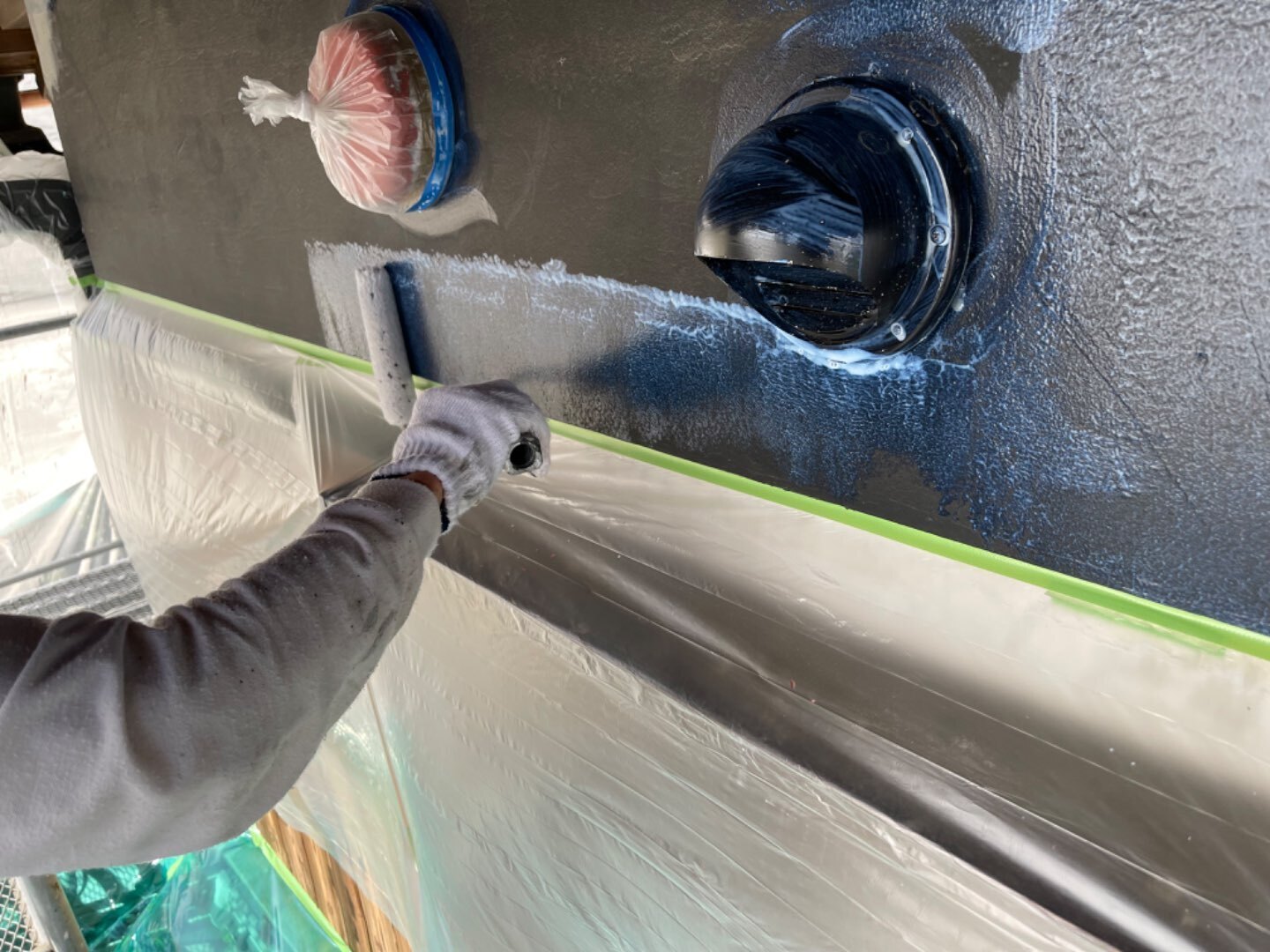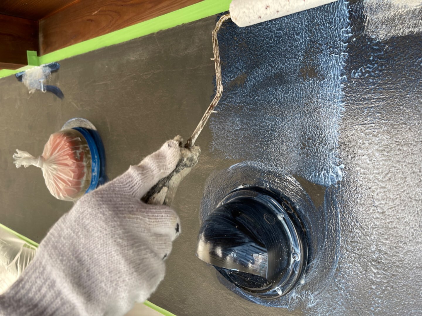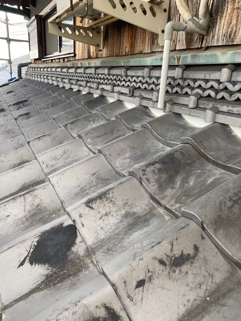 今日の吹田市N様邸の屋根漆喰塗り替え、塗装の養生、シーラー塗りです